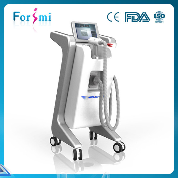 HIFUSHAPE High intensity focused ultrasound penetrates focused and volumetric ultrasonic energy at precise depth(1.2cm) in subcutaneous fat layers targeting fat tissue causing a non-thermal effect.The surrounding structures such as the epidermis,blood vessels and nerves will not be damaged.Meanwhile the metabolized contents(triglyceride,fatty acid) of cells will excrete outside body automatically through blood circulation and lymphatic drainage without harm to the human body.